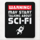 Warning! May Start Talking About Sci-Fi. Great Christmas or birthday funny novelty gift idea for anyone who loves science fiction, and is a sci-fi geek or nerd who’s a member of sci fi fandom. Cool design to wear to a sci-fi convention or cosplay event. Do you love science fiction and fantasy books, short stories, tv shows or movies? Do you enjoy 70’s and 80’s vintage retro sci-fi films? Do you like cosplaying? If you’re a scifi fan, and have a sense of humour, then this design is perfect for you!