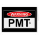 PMT warning sign cards for women complete with hanging man silhouette to warn others of your PMT and your associated PMT mood swings,ha ha! Scare men in a PMT warning sign T shirt this Autumn!