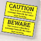 Two cautionary warning signs. Change the wording to display your own message on each. Size 8 inches wide. Construction site warning signs.