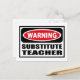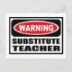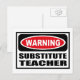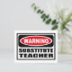 Warning SUBSTITUTE TEACHER Postcard you can customise at www.WarningSignShirts.com and features a red and black warning sign and SUBSTITUTE TEACHER in bold black letters to warn the world. You can also customise your own warning sign Postcard with the text you want.
