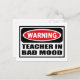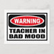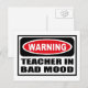 Warning TEACHER IN BAD MOOD Postcard you can customise at www.WarningSignShirts.com and features a red and black warning sign and TEACHER IN BAD MOOD in bold black letters to warn the world. You can also customise your own warning sign Postcard with the text you want.