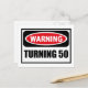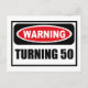 Warning TURNING 50 Postcard you can customise at www.WarningSignShirts.com and features a red and black warning sign and TURNING 50 in bold black letters to warn the world. You can also customise your own warning sign Postcard with the text you want.