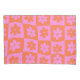Warped Retro Pink orange Flowers on Checkerboards Pillowcase