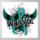 You are a Ovarian Cancer warrior. Wear your Valour proudly with our eye-catching Warrior t-shirts, merchandise, and apparel featuring a striking teal Ovarian Cancer awareness ribbon centred within a pair of distressed wings, a graffiti-splashed background, and grunge text. Empowering gift idea for the Ovarian Cancer warrior in your life.