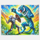 This fleece blanket has a warrior fighting a tiger on it.