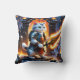Warrior Cat in Flame-Illuminated Fortress Cushion