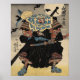 Warrior-monk Musashibō Benkei, standing firmly under the moonlight with his massive mallet resting on his shoulder by Utagawa Kuniyoshi