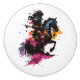 The design features a fearless warrior on a galloping horse in a unique, abstract art style. The silhouette is in dark tones, while dynamic splashes of pink, orange and yellow give the image an energetic, modern aesthetic. The warrior wears armour and holds a weapon, making the motif appear powerful and epic. Perfect for fans of mediaeval, fantasy and warrior art.