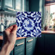 This striking ceramic tile reproduction features a noble or warrior figure in traditional blue and white, inspired by the historic tiles of the Palau de Maricel in Sitges, Spain. Set against an ornate floral background, the figure’s mediaeval attire and bold pose evoke Catalonia’s rich cultural past. This tile, like many in the Palau, blends Mediterranean ceramic traditions with Noucentisme aesthetics—a movement that celebrated classical form and regional identity. Ideal for lovers of Spanish art, Mediterranean decor, or symbolic tile designs, this piece is a unique glimpse into Catalonia’s artistic soul.