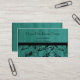 Represent your business with these classy and chic personalised business cards. 100% personalised. Use the text template to insert and/or add any wording necessary to put your name and business image on your own personal card. An absolute essential for helping to carry your business and name to the next level of professionalism. Cards feature a washed aqua green background with a pattern swirl of damask feature at the bottom. Cards are two sided with a coordinated washed aqua green background on the backside..