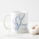This coffee mug features a map of Chesapeake Bay including the coast of New Jersey, Delaware, Maryland and Virgina.