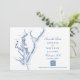This easily customisable photo save the date features a map of Chesapeake Bay including the coast of New Jersey, Delaware, Maryland and Virgina and show the towns of Atlantic City, Cape May, Wilmington, Havre de Grace, Ocean City, Lewes, Rohoboth Beach, Bethany Beach, Chincoteague, Assateague Island, Baltimore, Annapolis, Kent Island, Washington DC, Arlington, Alexandria, Richmond, Ridge, Williamsburg, Newport News, Virginia Beach, Chesapeake and many more. Artwork by Coastal Map Designs.