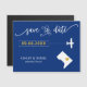 You chose a special place for your wedding. Now it's time to celebrate it with this keepsake save the date magnet card, featuring a silhouette map and a tiny plane headed to your destination. To move the heart to the place of your wedding, click personalise and then "customise further."