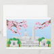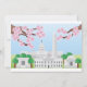 Washington DC Landmarks with Cherry Blossoms against Blue Sky Illustration and Drawing Invitation Card