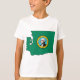 100% cotton so perfect for summer, It is a nicely designed t-shirt, the fabric is soft and the seams finished well, the body of the t shirt has no side seams. I bought a medium size for my two grandsons, aged 9 and 8 it will be slightly big on them but I would rather that than too small