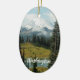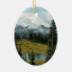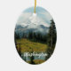 Oval style ornament featuring a scenic photo image of snow capped Mount Rainier and surrounding scenic landscape in the Cascade Mountains of the Pacific Northwest. Image printed on both sides. Select your ornament style. Makes a great travel souvenir!