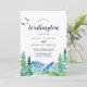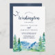 This Washington mountain destination wedding invitation is perfect for an outdoor wedding. The design features a blue and green painted wilderness landscape with watercolor pine trees, birds and mountains. Customise this invitation for any mountain destination wedding location.