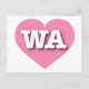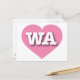 This postcard features a cool pink heart containing the bold white upper case letters WA, the official abbreviation for Washington, the evergreen state. The reverse side of the postcard is blank, awaiting your handwritten sentiments or customised text.