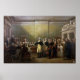 GENERAL GEORGE WASHINGTON RESIGNING HIS COMMISSION by: John Trumbull. General George Washington resigned his commission as Commander-in-Chief of the Army to the Congress, which was then meeting at the Maryland State House in Annapolis, on December 23, 1783. This action was of great significance in establishing civilian, rather than military rule, leading to a republic, rather than a dictatorship. Washington stands with two aides-de-camp addressing the president of the Congress, Thomas Mifflin, and others, such as Elbridge Gerry, Thomas Jefferson, James Monroe, and James Madison. Mrs. Washington and her three grandchildren are shown watching from the gallery, although they were not in fact present at the event. However it is rumoured that the painting does portray Washington at different stages of his life. John Trumbull (1756–1843) was born in Connecticut, the son of the governor. After graduating from Harvard University, he served in the Continental Army under General Washington. He studied painting with Benjamin West in London and focused on history painting. This oil painting on canvas is now located in the United States Capitol rotunda in Washington D.C. Its dimensions are 365.76 cm × 548.64 cm (144.00 in × 216.00 in). Commissioned in 1817, placed in the rotunda in 1824.