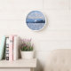 Decorate a living space with this stylish wall clock with white numerals and features a scenic, landscape photo image of majestic Mount Rainier and the blue waters of Puget Sound, Washington. Select your clock style and size.