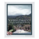 A digital painting of the landscape around Mount St. Helens. This is not an actual scene. Mount Hood peeks over from Oregon in the background. Mount Rainier enters the scene at the bottom. There is a blue border with a pair of red apples. The statehood year is in the top right corner, 1889. In the centre, the white text reads: "Washington State", "For you and me, a destiny", "Alki". Image Copyright ©2023 Kimberly J Tilley.