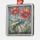 Wasp hornet bee stained glass vibrant poppy flower metal ornament