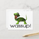 A happy go lucky design featuring a silly turtle with his tongue hanging out and the words, WASSUP!, underneath. Very cute, very fun.