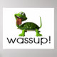 A happy go lucky design featuring a silly turtle with his tongue hanging out and the words, WASSUP!, underneath. Very cute, very fun.
