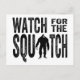 Grunge distressed style, large blocky letters warn other bigfoot hunters to Watch for the SQUATCH! A sasquatch creature himself is standing in the place of the A. Cool, simple black and white image works well on light, bright or medium dark coloured apparel.