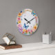 A wall clock is a timekeeping device designed to be mounted on a wall. It typically features a circular face with numbers or markers that represent hours and minutes. The clock's hands—hour, minute, and sometimes second hands—move around the face to indicate the time. Many wall clocks also have additional features such as date displays, alarms, or decorative elements. They come in various styles, from traditional analogue designs with ornate frames to modern digital