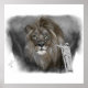This is a digital painting of a person painting a mural of a lion on a muscular back.
