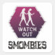 Cool and funny design featuring a sign with two walking people watching at their smartphones like zombies and the quote "Watch out Smombies".