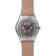 The quilted pattern "Castle" in brown and blue, is the background for the watch face. White numerals are situated at the "towers and corners" of the castle.