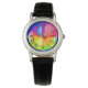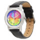 Colourful abstract design of clockface, watercolor look, vivid colours, roman numerals.