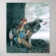 A young warrior maid kneels under a beech tree, with an arm around her wolf companion. Her bow is ready by her side. This is another from my "Watcher" series. It was drawn with Primsacolor pencils on Canson MiTentes paper in 1991. The model for this picture is Sarah; the same Sarah who posed for "Music Lover", but by this picture she'd grown into a beautiful young woman.