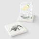 The coasters are gorgeous, a quality feel and heavy weight. They look like a precious archeological find. A rustic stone juxtaposed with a modern floral black and white print. I like the way the print goes slightly imperfect on the cut stone edges giving them a kind-of natural beauty.