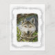 Original art work by David Paul Colourful Wolf with mystic eyes peering through the woods. TItle of the artwork is Watchful Eyes