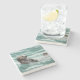 The coasters are gorgeous, a quality feel and heavy weight. They look like a precious archeological find. A rustic stone juxtaposed with a modern floral black and white print. I like the way the print goes slightly imperfect on the cut stone edges giving them a kind-of natural beauty.