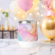 This thermal water tumbler is shown in a pretty pastel colours ink swirl abstract print.