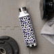 This insulated water bottle is shown in white with a lovely leopard animal print.