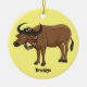 Water buffalo with flowers cartoon illustration ceramic ornament