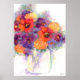 This floral still life watercolor with its bright flowers stand out on a white background and would be a great addition to any room.