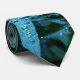 Beautiful tie made of a photo of water drops on leaves. Blues & aqua colours on a dark background.