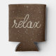 Relax text in nautical rope design on brown background with water droplet condensation.