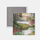 Beautiful Tiffany Stained Glass reproduction. A Water Garden with red Lotus Flowers and Lilypads in a pond, are on this Stained Glass Magnet. Beautiful!