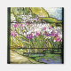 Beautiful Tiffany Stained Glass reproduction. A Water Garden with wild Iris Flowers and leaves in a pond, are on this Stained Glass Magnet.