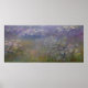 Water Lilies by Claude Monet, oil on canvas 1915-1926, is a large, panoramic landscape painting of a pool of water lily pads floating upon a pool of calm water in a flower garden pond, the forms of the plants on and under the water dissolving into the atmosphere and reflections of the surrounding garden plants. Painting from the elaborate flower garden at his home in Giverny, Monet fills the entire picture plane with a nearly abstract composition, as his Water Lilies series heralded much of the abstract painting of the 20th century.