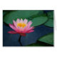 A beautiful single pink water lilly among green leaves. The original is a miniature oil painting by Kathie Miller