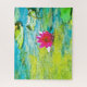 A fuchsia water lily with lime green foliage in turquoise water makes a Monet-inspired jigsaw puzzle.