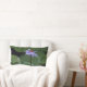 The image on this Lumbar Pillow is an original photograph by MaeFlowers of a water lily, a flower blooming amid the lily pads floating on the water. The flower is a lovely lavender blue colour, standing out from the dark green, round lilypads.